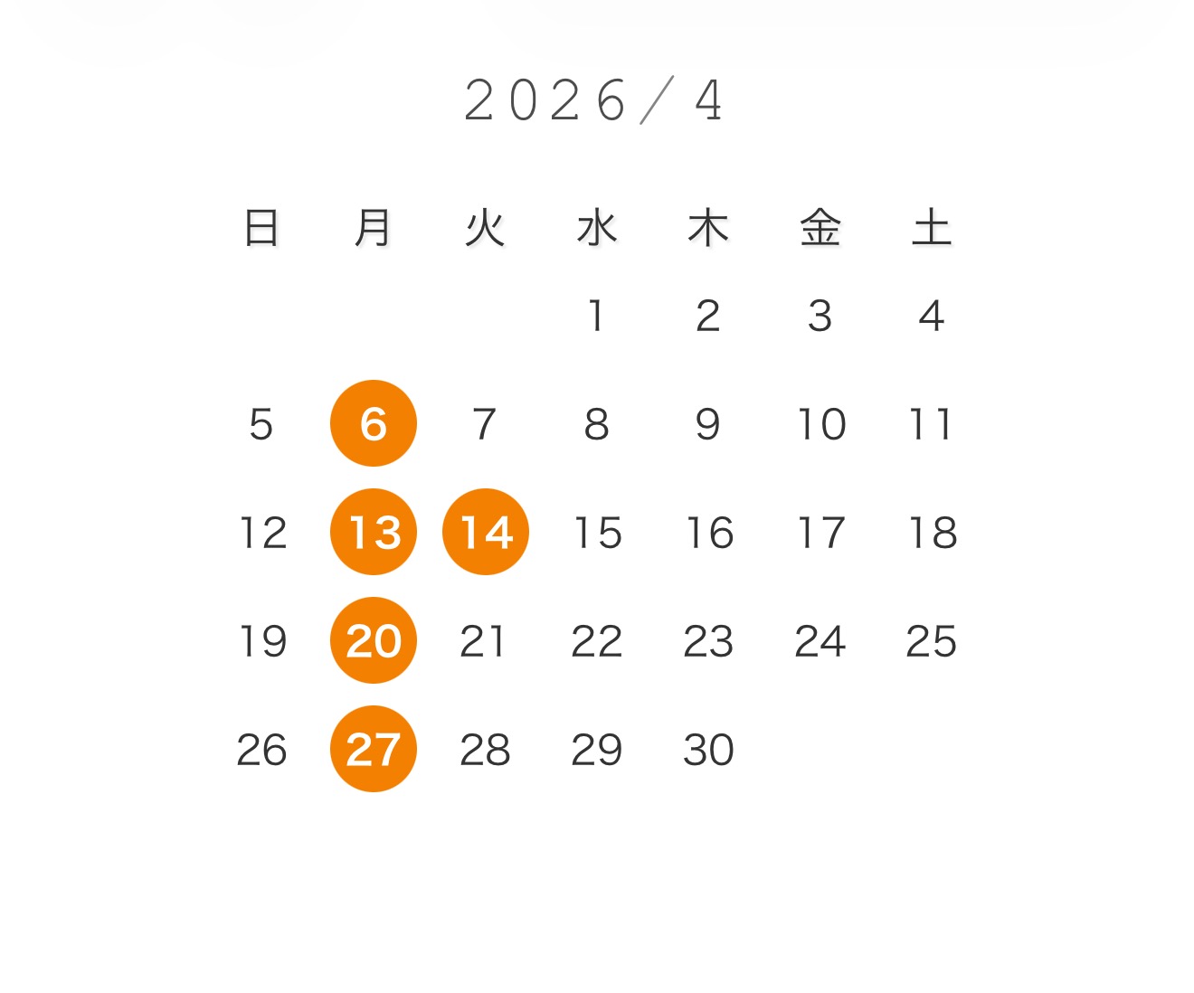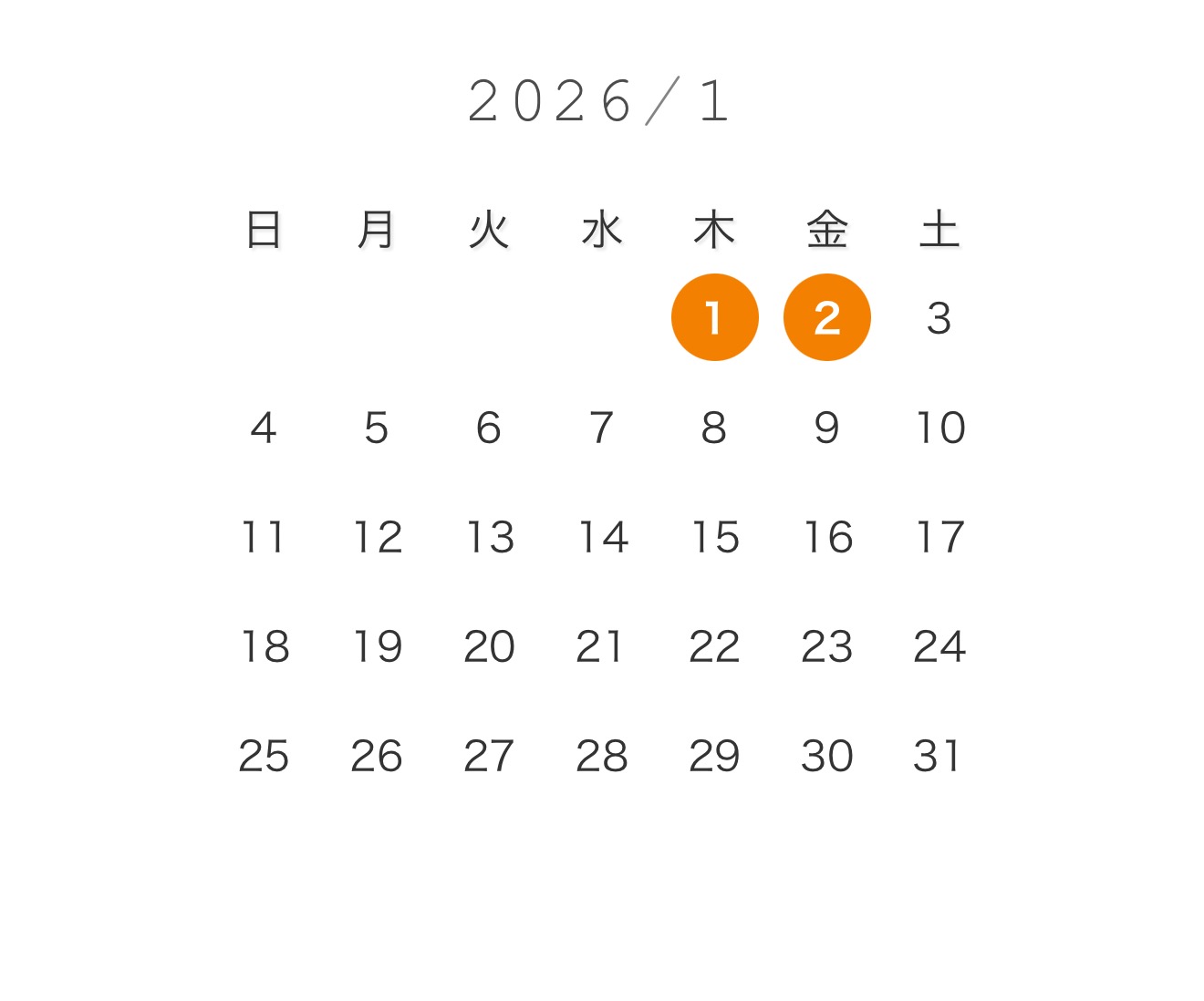 今月の定休日